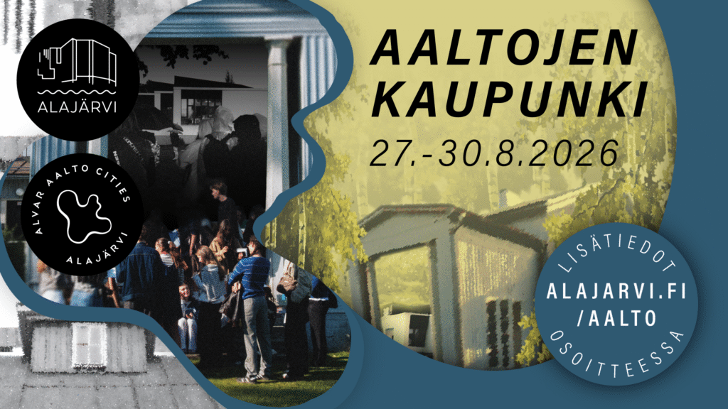 Toista kertaa järjestettävä Aaltojen kaupunki -tapahtuma järjestetään 27.8.-30.8.2026. Alajärvi täyttyy arkkitehtuuriin, taiteeseen ja kulttuurin syventyvästä ohjelmasta, joka kunnioittaa Alvar Aallon perintöä. Tule nauttimaan konserteista, näyttelyistä, inspiroivista luennoista ja unohtumattomasta tunnelmasta! Lisätietoja ja ohjelma päivittyy kevään 2026 aikana sivuille: www.alajarvi.fi/aalto