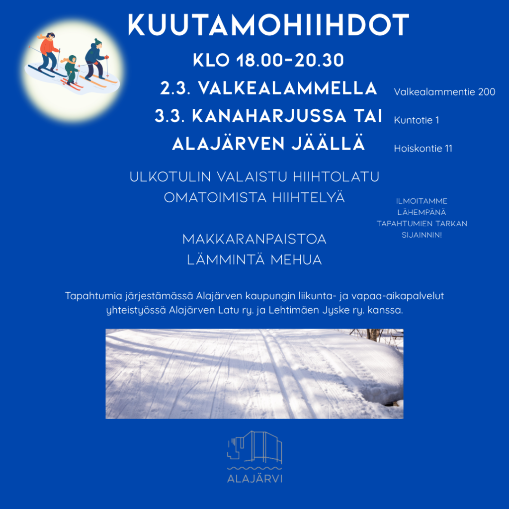 Lisätietoja ilmoittautumisesta: 040 6234 870 / viivi.keijonen@alajarvi.fi
